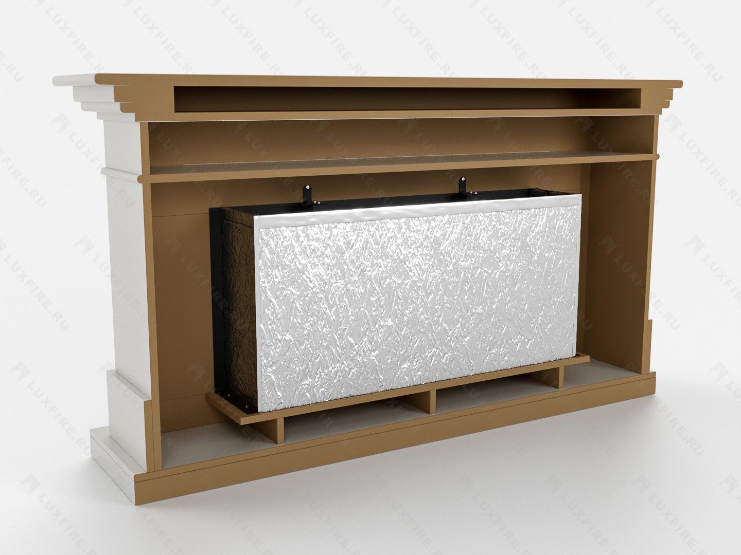 Представляет собой сборную окрашенную конструкцию из МДФ c портальным биокамином Lux Fire "Фаер Бокс 1-42"