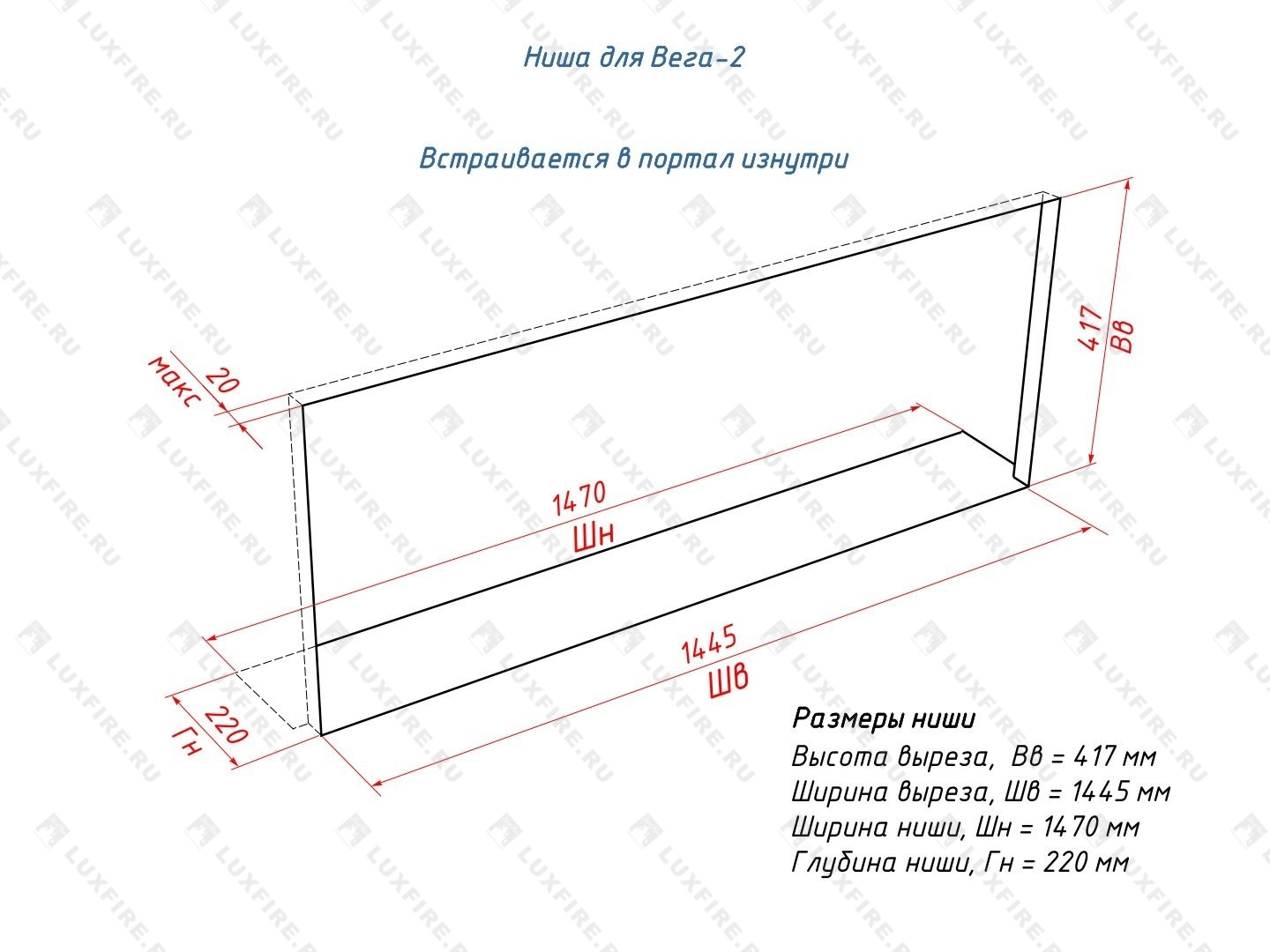 Адаптивен к каминным порталам и аналогам электрокаминов популярных марок VISION 60.